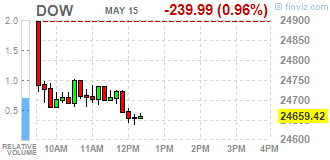 Большинство компонентов DOW в минусе (28 из 30). Лидер роста - Walmart Inc. (WMT, +0.09%). Аутсайдер - Intel Corporation (INTC, -2,23%).