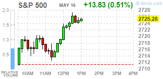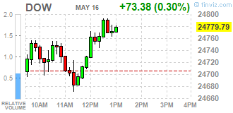 Большинство компонентов DOW в плюсе (22 из 30). Лидер роста - NIKE, Inc. (NKE, +2.50%). Аутсайдер - 3M Company (MMM, -0,97%).