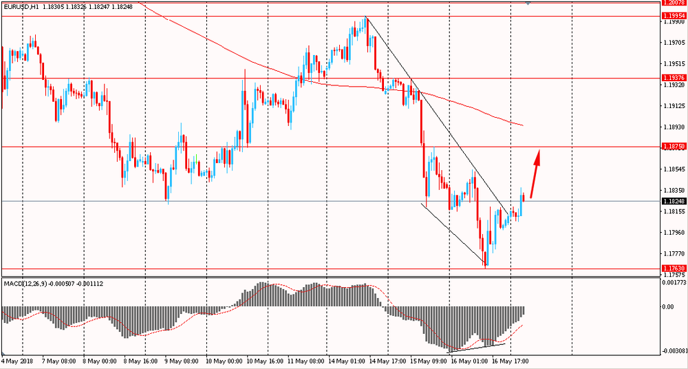 Пара EUR/USD сегодня утром выросла к $1.1835, корректируя после вчерашнего снижения. В среду единая валюта, оттолкнувшись от линии сопротивления, упала и обновила недельные минимумы. Однако, уже во второй половине дня пара сформировала бычью дивергенцию на часовом графике и с тех пор корректируется и растет. На данный момент евро пробило линию сопротивления и будет пытаться закрепить свой успех.