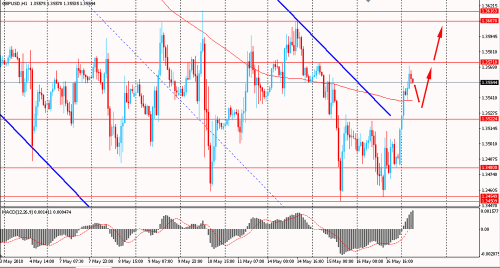 Пара GBP/USD сегодня утром выросла к $1.3570, корректируя после вчерашнего снижения. В среду пара находилась под давлением и практически весь день падала, торгуясь около недельных минимумов. Однако, уже сегодня ночью фунт начал стремительно расти, преодолев линию сопротивления глобального нисходящего тренда и линию скользящей средней MA 200 H1. На данный момент пара пытается закрепиться выше мувинга.
