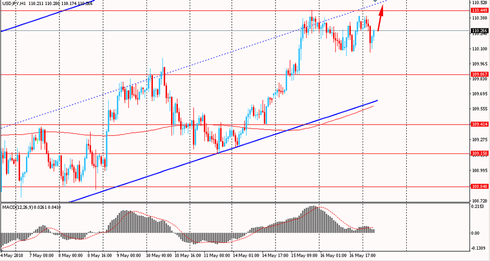 Сегодня пара USD/JPY упала к Y110.10, отступив от максимумов последних 2-х дней торгов. В среду пара была заперта в торговом диапазоне и весь день тестировала срединную линию глобального восходящего канала. На данный момент существенных изменений не произошло и, скорее всего, сегодня пара продолжит вчерашний день. Быки по-прежнему владеют инициативой и USD/JPY по-прежнему находится выше скользящей средней MA 200 H1.