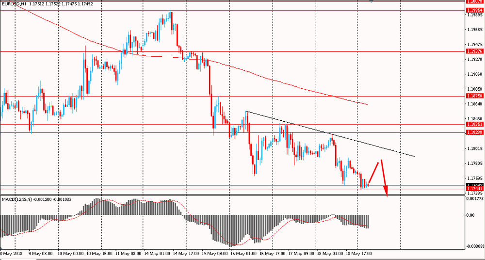 Пара EUR/USD сегодня утром упала к $1.1745, продолжая пятничное снижения. В пятницу единая валюта, оттолкнувшись от сопротивления последних 3-х дней, также упала и закрыла день на отрицательной территории. В целом пара остается ниже линии скользящей средней MA 200 H1 и находится под контролем медведей.