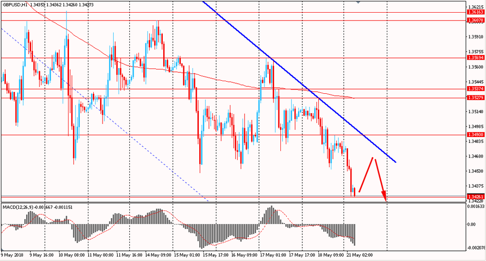 Пара GBP/USD сегодня утром упала к $1.3425, обновив месячные минимумы. В пятницу фунт также снижался в цене, оттолкнувшись от глобальной линии сопротивления общего нисходящего тренда. На данный момент нисходящий импульс продолжает развиваться и пара по-прежнему находится ниже линии скользящей средней MA 200 H1.