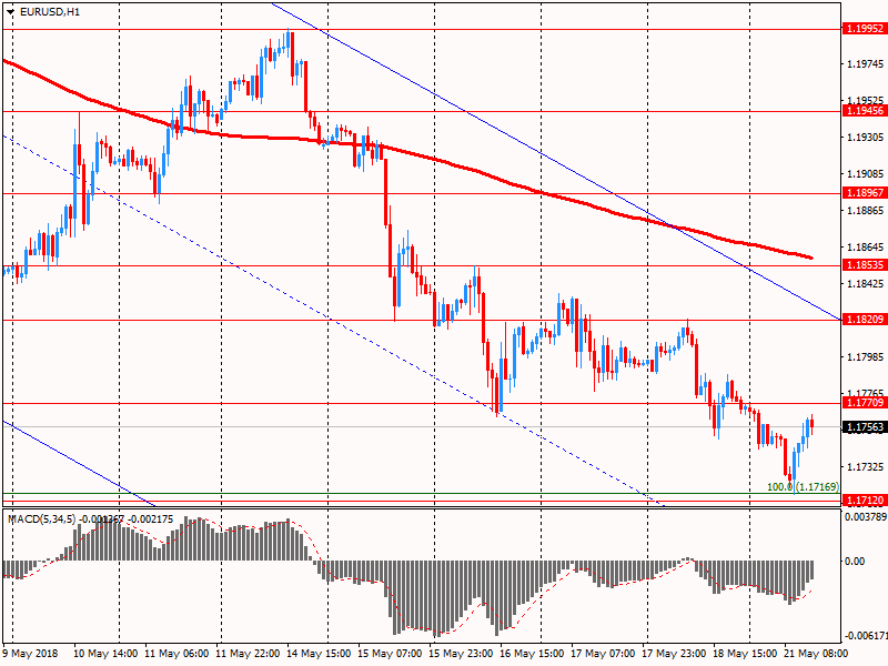 Пара EUR/USD снизилась в ходе азиатской сессии, но нащупав дно на уровне новых минимумов 2018 года в области $1.1710, восстановилась и выросла к $1.1760. При этом, индекс доллара вырос выше 94.00 к максимумам с декабря 2017, но позже немного снизился.