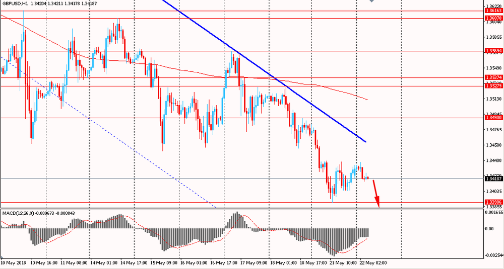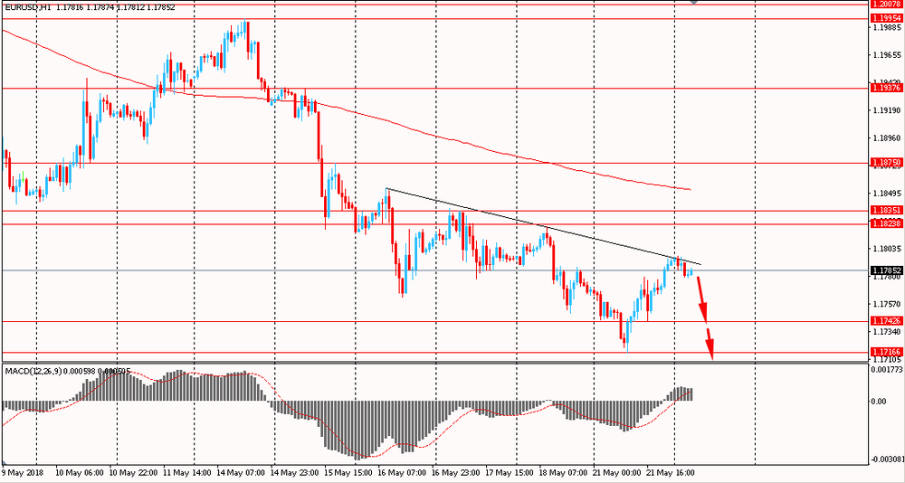 Пара EUR/USD сегодня утром торговалась в диапазоне $1.1780-95. Вчера пара обновив недельные минимумы, нашла поддержку около $1.1715 и после этого выросла, закрыв день на положительной территории. На данный момент пара тестирует уровень сопротивления от 16 мая. Стоит отметить, что в целом евро остается ниже линии скользящей средней MA 200 H1 и находится под контролем медведей.