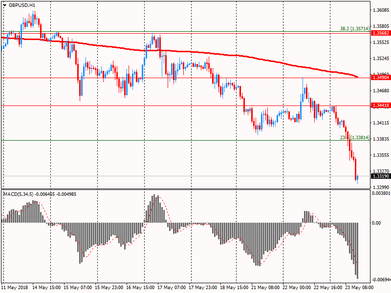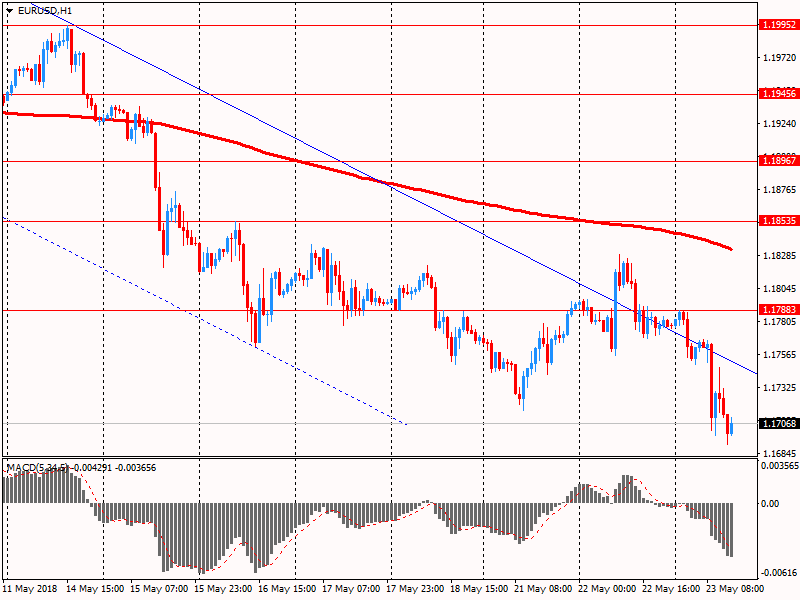 Пара EUR/USD продолжает оставаться под давлением политической ситуации в Италии, а также выпуска слабых данных PMI Германии и еврозоны. Индексы PMI просели к годовым минимумам, указывая на замедление импульса роста европейской экономики. Тем временем доллар продолжает пользоваться спросом, что в итоге продавило пару к минимальным с середины ноября 2017 г. уровням.