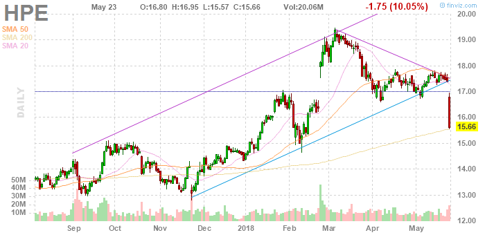 На текущий момент акции HP Enterprise (HPE) котируются по $15,66 (-10,05%)