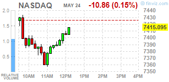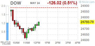 Большинство компонентов DOW в минусе (27 из 30). Лидер роста - General Electric Company (GE, +3.10%). Аутсайдер - Exxon Mobil Corporation (XOM, -2,29%).