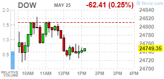Большинство компонентов DOW в минусе (19 из 30). Лидер роста - Intel Corporation (INTC, +1.04). Аутсайдер - Chevron Corporation (CVX, -4,20%).