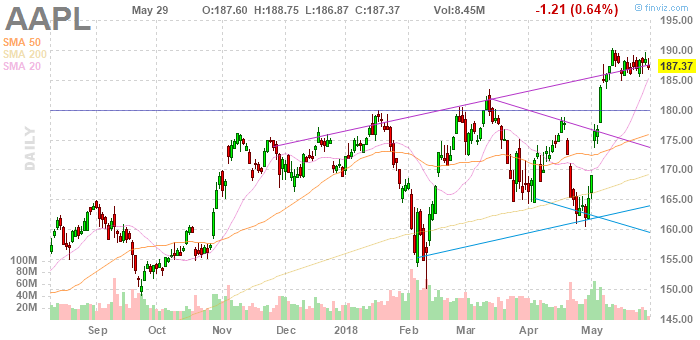 На текущий момент акции Apple (AAPL) котируются по $187,37 (-0,64%)