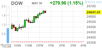 Большинство компонентов DOW в плюсе (28 из 30). Лидер роста - Exxon Mobil Corporation (XOM, +3.55). Аутсайдер - General Electric Company (GE, -0,60%).