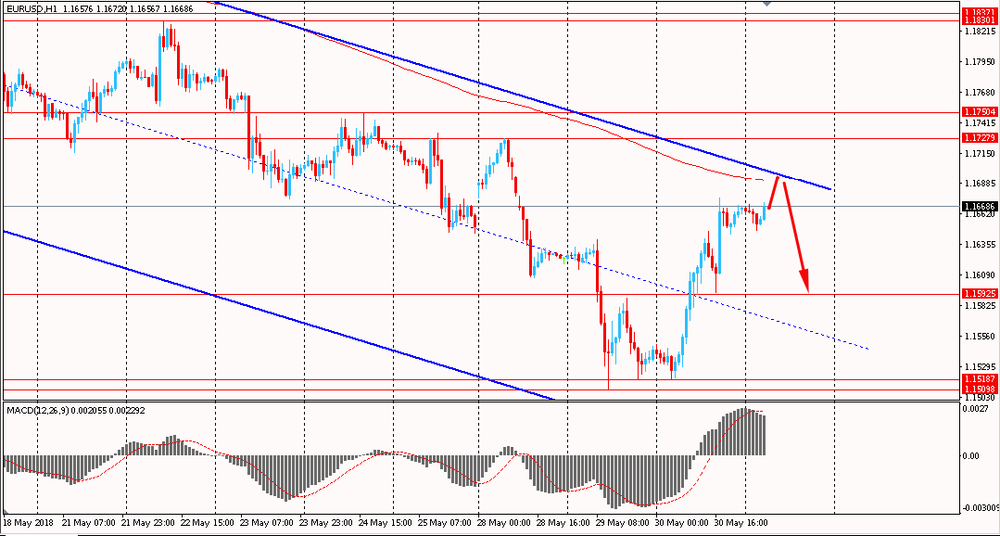 Пара EUR/USD сегодня утром торговалась в диапазоне $1.1645-70, находясь около вчерашних максимумов. В среду пара резко выросла, отступив от недельных минимумов, и закрыла день на положительной территории. Пара сумела преодолеть срединный уровень нисходящего канала. На данный момент евро приближается к уровню сопротивления глобального тренда и линии скользящей средней MA 200 H1. Пока пара находится ниже мувинга - медведи сохраняют контроль.