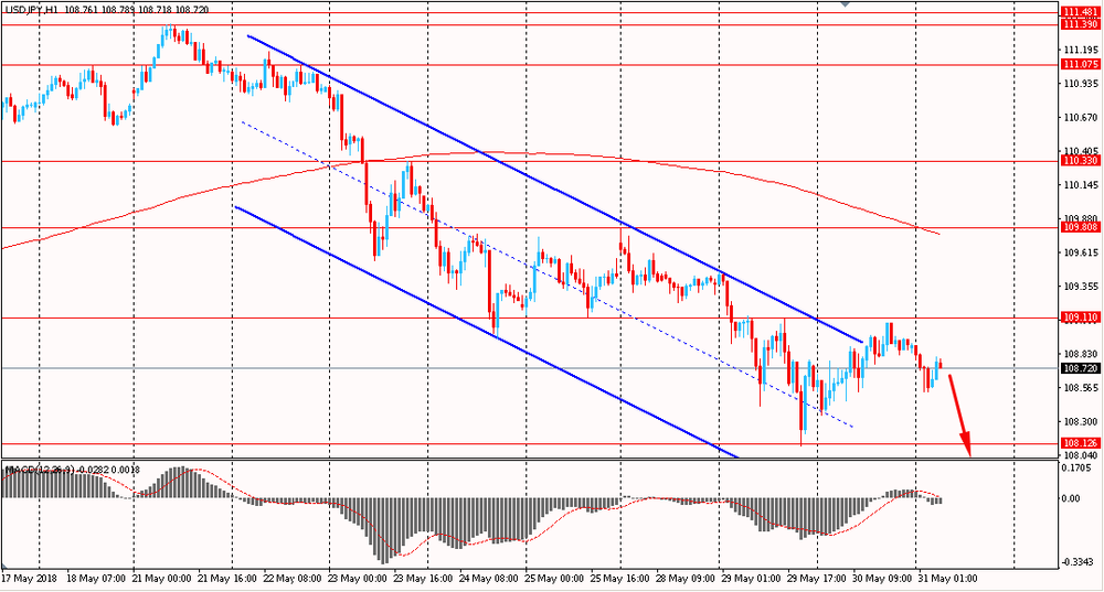 Сегодня пара USD/JPY снизилась к Y108.55, отступив от вчерашнего максимума. В среду пара тестировала сопротивление глобального нисходящего канала, однако не смогла закрепиться выше. На данный момент пара вернулась в медвежий тренд и по-прежнему торгуется ниже уровня скользящей средней MA 200 H1.