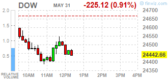 Большинство компонентов DOW в минусе (25 из 30). Лидер роста - Microsoft Corporation (MSFT, +0.91%). Аутсайдер - The Procter & Gamble Company (PG, -2,31%).