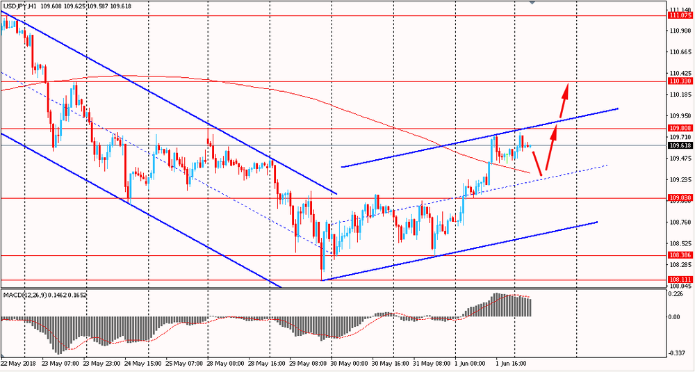 Сегодня пара USD/JPY торговалась в диапазоне Y109.45-75, находясь около пятничных максимумов. В последний торговый день прошлый недели пара преодолела линию сопротивления скользящей средней MA 200 H1. На данный момент USD/JPY пытается закрепиться выше этого мувинга и торгуется в восходящем канале от 29 мая.