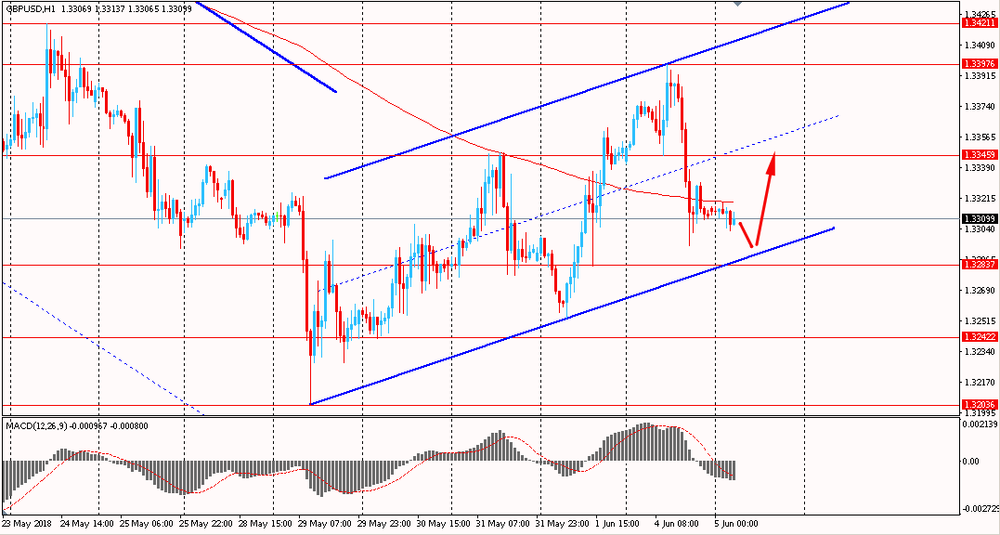 Пара GBP/USD сегодня утром торговалась в диапазоне к $1.3305-15, оставаясь около вчерашних минимумов. В понедельник пара, оттолкнувшись от линии сопротивления восходящего канала, начала падать и закрыла день на отрицательной территории. Помимо этого, на данный момент фунт тестирует линию скользящей средней MA 200 H1 и пытается закрепиться ниже данного мувинга. Тем не менее, быки по паре продолжают удерживать пару в рамках общего восходящего тренда.