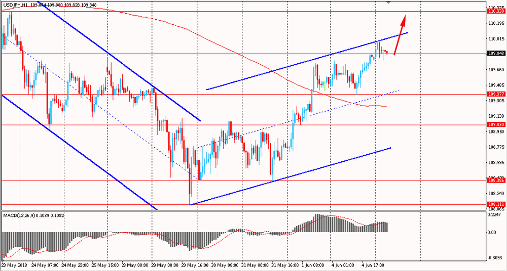 Сегодня пара USD/JPY торговалась в диапазоне Y109.45-75, находясь около вчерашних максимумов. В понедельник пара выросла и закрыла день на положительной территории, обновив недельные максимумы. На данный момент пара торгуется около линии сопротивления глобального восходящего канала. Помимо этого, пара по-прежнему находится выше линии сопротивления скользящей средней MA 200 H1.