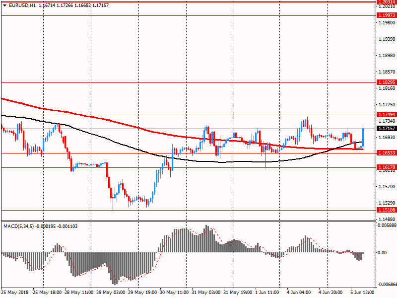 Евро резко вырос против доллара США, обновив максимум сессии. Катализатором этому было сообщение от Bloomberg, что на заседании ЕЦБ 14 июня будут обсуждаться сроки завершения программы количественного смягчения. Сейчас пара EUR/USD торгуется на $1.1716