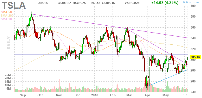 Акции Tesla (TSLA) выросли почти на 4% в ходе регулярной сессии среды, после того, как компания показала, что она приближается к своей запланированной недельной производительности, а акционеры на ежегодном собрании Tesla поддержали Элона Маска в качестве председателя и генерального директора.