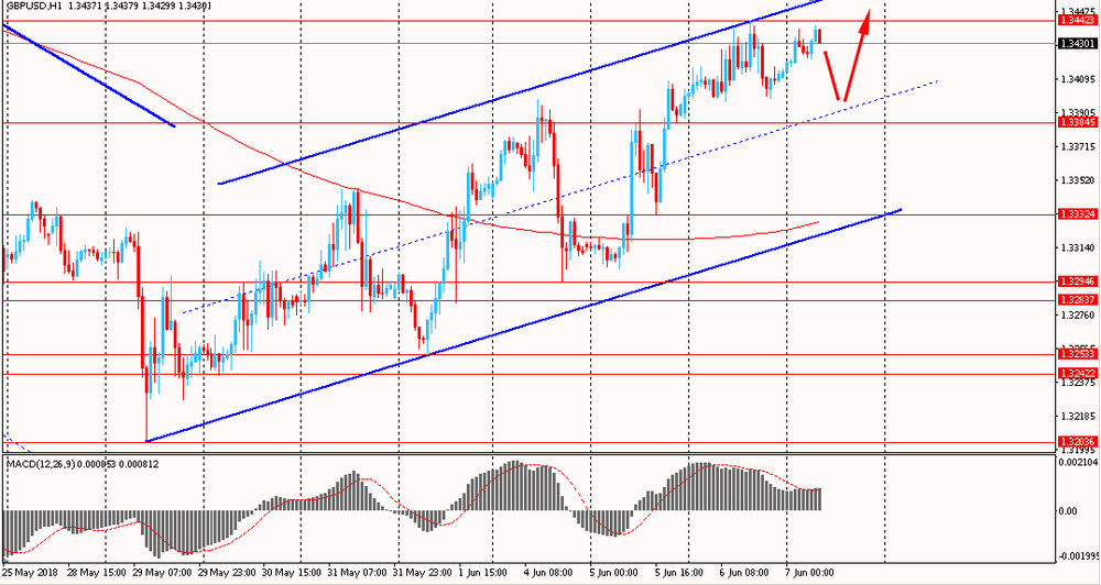 Пара GBP/USD сегодня утром торговалась в диапазоне к $1.3415-35, находясь около вчерашних максимумов. В среду пара выросла, коснулась уровня сопротивления восходящего глобального канала и закрыла день на на положительной территории. На данный момент фунт снова приближается к линию сопротивления тренда и все еще уверенно сохраняется выше скользящей средней MA 200 H1.