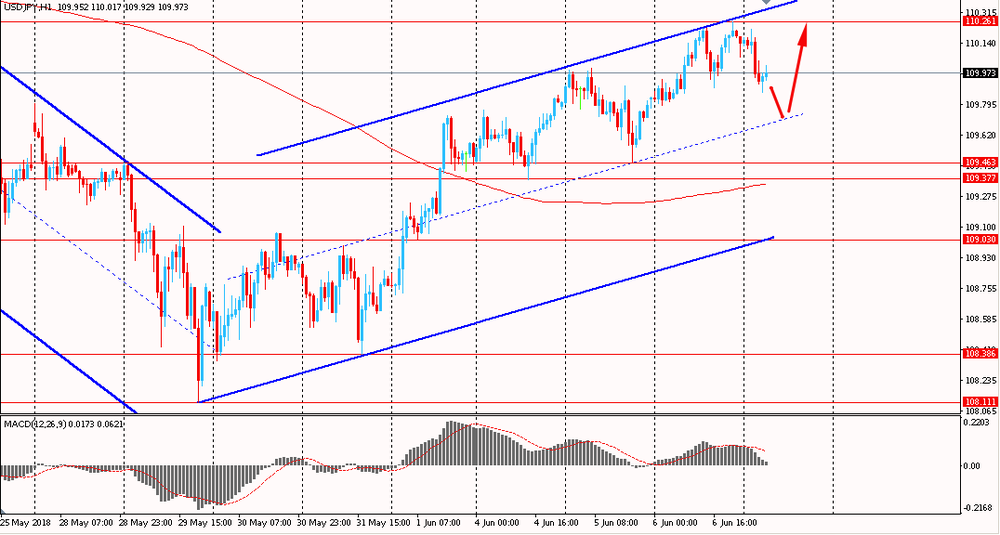 Сегодня пара USD/JPY упала к Y109.85, отступив от вчерашних максимумов. В среду пара выросла, но оттолкнувшись от сопротивления восходящего канала начала снижаться. На данный момент пара стремится к срединной линии глобального тренда. Помимо этого, пара по-прежнему находится выше линии сопротивления скользящей средней MA 200 H1 и находится под контролем быков.
