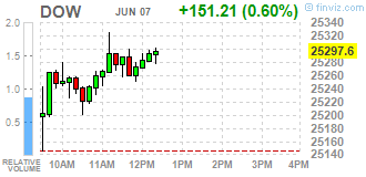 Большинство компонентов DOW в плюсе (23 из 30). Лидер роста - McDonald's Corporation (MCD, +3.26). Аутсайдер - Intel Corporation (INTC, -1,78%).