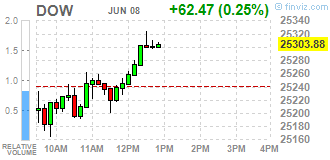 Большинство компонентов DOW в плюсе (19 из 30). Лидер роста - The Procter & Gamble Company (PG, +1.69). Аутсайдер - Intel Corporation (INTC, -1,74%).