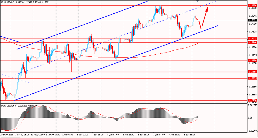 Пара EUR/USD сегодня утром выросла к $1.1805, отступая от пятничных минимумов. В последний день прошлой торговой недели пара упала и приблизилась к линии поддержки канала, закрыв день на отрицательной территории. На данный момент пара начала восстанавливаться и торгуется выше линии скользящей средней MA 200 H1. Помимо этого евро находится в восходящем канале и на текущий момент стремиться к его срединной линии.