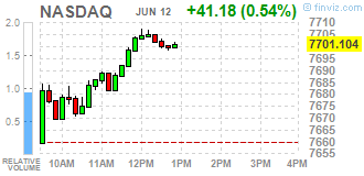 Большинство компонентов DOW в плюсе (16 из 30). Лидер роста - Caterpillar Inc. (CAT, +1.22). Аутсайдер - Verizon Communications Inc. (VZ, -0,78%).