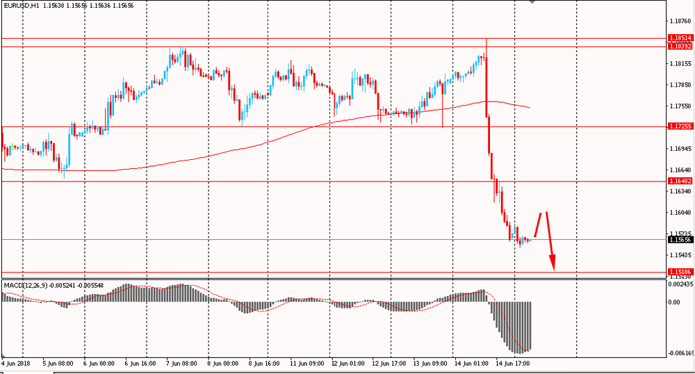 Пара EUR/USD сегодня утром продолжила вчерашнее снижение и упала к $1.1555. В четверг пара, оттолкнувшись от недельных максимумов резко упала и закрыла день на отрицательной территории. На данный момент пара уже торгуется ниже уровня скользящей средней MA 200 H1 и находится под полным контролем продавцов. Сохраняется высокая вероятность продолжения нисходящего движения по паре.