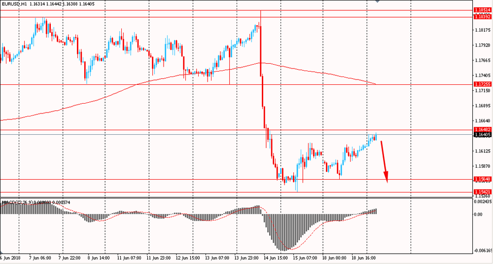 Пара EUR/USD сегодня утром немного выросла к $1.1640, продолжая вчерашний подъем. В понедельник пара корректировалась и смогла закрыть день небольшим повышением. На данный момент пара все еще восстанавливается, но торгуется ниже уровня скользящей средней MA 200 H1 и находится под полным контролем продавцов. Сохраняется высокая вероятность продолжения нисходящего движения по паре.