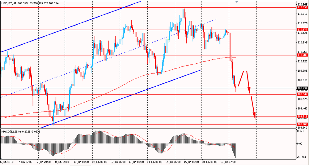 Сегодня утром пара USD/JPY упала к Y109.70, обвалившись практически на фигуру с момента открытия торгового дня. В понедельник пара также находилась под давлением и закрыла день на отрицательной территории ниже срединной линии восходящего канала. На данный момент пара прорвала линию скользящей средней MA 200 H1 и смогла закрепиться ниже наклонной линии глобального восходящего тренда. В данной ситуации медведи полностью перехватили контроль над парой и в ближайшие дни продолжат развивать свой успех.