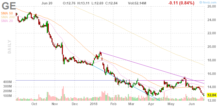 Согласно данным Thomson Reuters, GE теперь присоединилась к 3M Co (МММ) в списке Dow-компонентов, которые меньше всего предпочитают биржевые аналитики. После недавнего предупреждения GE о невозможности выплатить дивиденды в 2019 году, только пять аналитиков рекомендуют покупать акции GE, по сравнению с тремя, которые рекомендуют продавать, и восемью с нейтральными рейтингами.