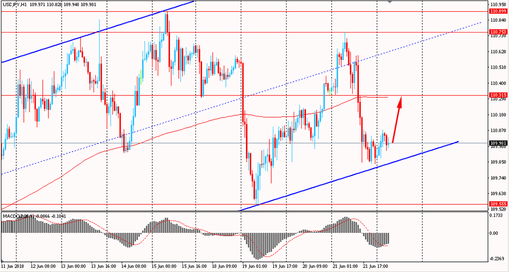 Сегодня утром пара USD/JPY торговалась в диапазоне Y109.85-05, оставаясь около вчерашних минимумов. В четверг пара, оттолкнувшись от срединной линии восходящего канала, упала и закрыла день в минусе. На данный момент пара смогла закрепиться ниже линии скользящей средней MA 200 H1, однако все еще удерживается в рамках глобального восходящего канала. Стоит отметить, что пара тестирует наклонную линию поддержки канала и от результатов будет зависеть, кто возьмет контроль над ситуацией: быки или медведи.