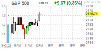 Большинство компонентов DOW в плюсе (20 из 30). Лидер роста - General Electric Company (GE, +8.08%). Аутсайдер - Intel Corporation (INTC, -2,02%).