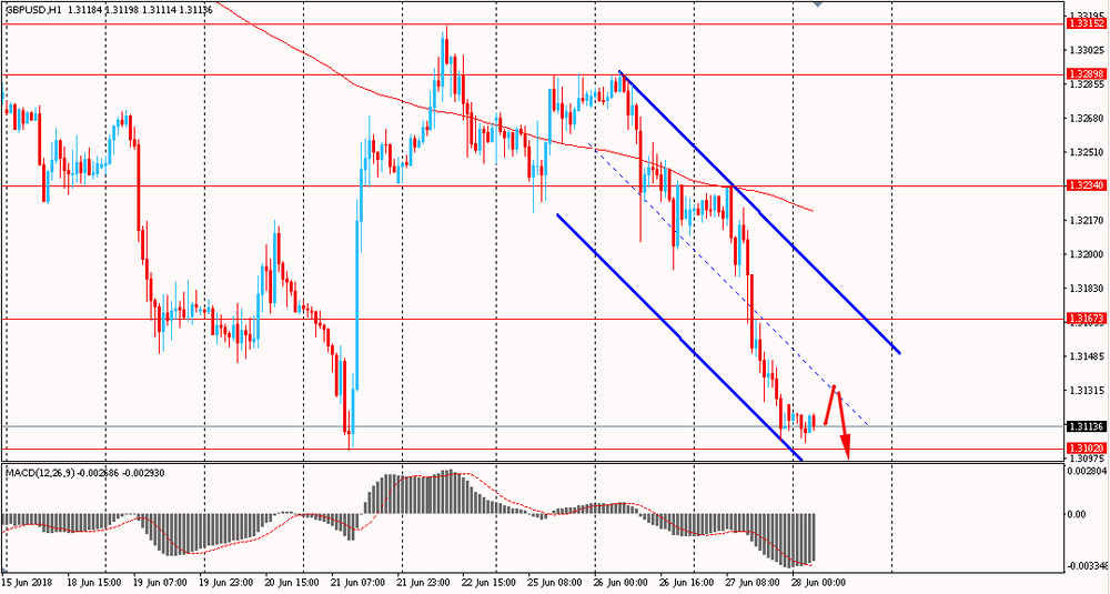 Пара GBP/USD сегодня утром упала к $1.3105, продолжая нисходящее движение вчерашнего дня. В среду пара также упала, оттолкнувшись от линии сопротивления нисходящего канала, и закрыла день на отрицательной территории. На данный момент фунт сумел уверенно закрепиться ниже линии скользящей средней MA 200 H1 и сейчас находится под контролем медведей в рамках общего нисходящего канала.