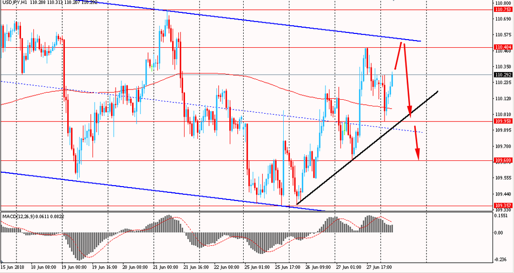 Сегодня утром пара USD/JPY резко упала к Y109.95, но потом отыграла потерянные позиции и уже выросла выше цены открытия дня. Вчера пара совершила такой же маневр и смогла завершить день на положительной территории, оттолкнувшись от срединной линии нисходящего канала. На данный момент USD/JPY пытается закрепится выше линии скользящей средней MA 200 H1 и приближается понемногу к линии сопротивления общего нисходящего канала. Формирование нового нисходящего импульса возможно в случае закрепления пары ниже поддержки последних 3-х дней торгов.