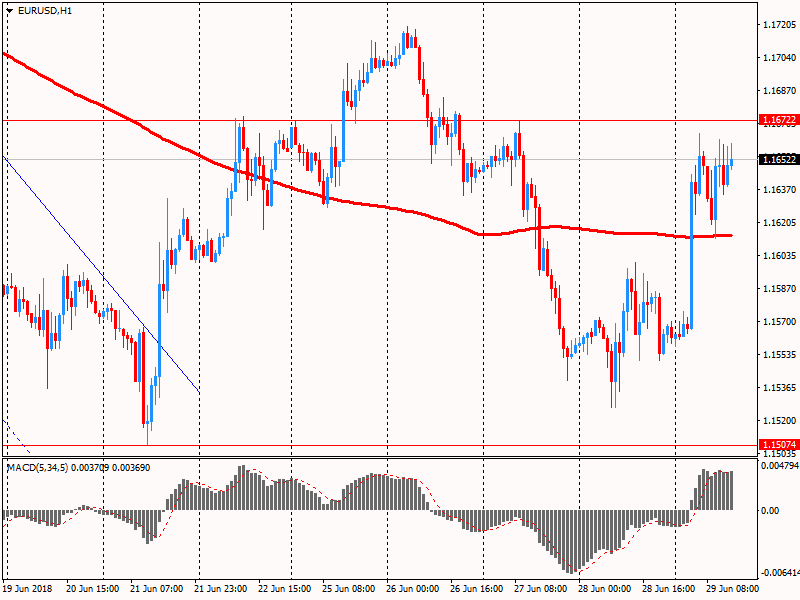 Евро вырос против доллара до отметки $1.1665 на фоне новостей о том, что лидерам ЕС удалось договориться по вопросу миграционной политики, однако столкнулась с сопротивлением и отступила на 50 пкт, но затем получила новый импульс от данных по инфляции в еврозоне. Соглашение по вопросу миграции немного ослабило давление на Меркель и стало сигналом о том, что в еврозоне все-таки есть согласие.