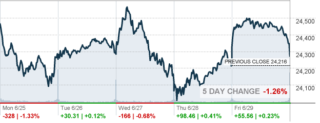В четверг основные фондовые индексы США умеренно выросли, чему главным образом способствовало подорожание акций финансовых и технологических компаний. Определенное внимание инвесторов также привлекли данные по США. Министерство труда заявило, что первоначальные заявки на пособие по безработице выросли на 9 000 до 227 000 с учетом сезонных колебаний за неделю по 23 июня. Экономисты прогнозировали, что заявки составят 220 000. Вместе с тем, экономический рост был медленнее в начале 2018 года, чем ранее сообщалось правительством. Валовой внутренний продукт, отражающий широкий ассортимент товаров и услуг, производимых в США, увеличился с учетом сезонных колебаний и скорректированный с учетом инфляции, на 2% годовых. Это было слабее, чем более ранняя оценка роста на 2,2%. Экономисты прогнозировали рост на 2,2%.