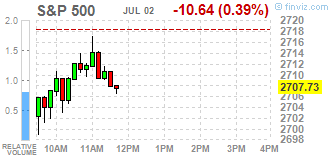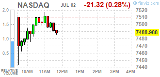 Большинство компонентов DOW в минусе (21 из 30). Лидер роста - Apple Inc. (AAPL, +0,68%). Аутсайдер - NIKE, Inc. (NKE, -2,54%).