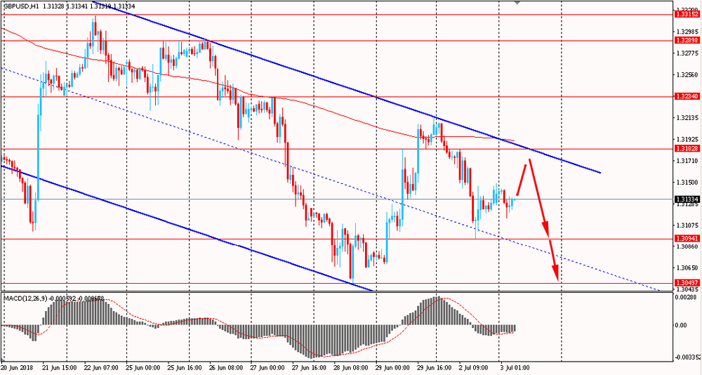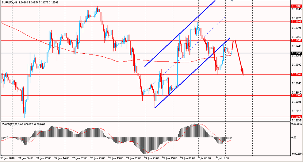 Пара EUR/USD сегодня утром торгуется в диапазоне $1.1620-40. Вчера пара оттолкнувшись от линии сопротивления канала, начала падать и закрыла день на отрицательной территории. Евро сумел выйти за пределы восходящего канала от 28 июня. На данный момент пара совершила ре-тест пробитой поддержки канала и пытается закрепиться ниже линии скользящей средней MA 200 H1. Скорее всего медведи будут пытаться продолжить вчерашнее снижение и закрепить свои позиции.