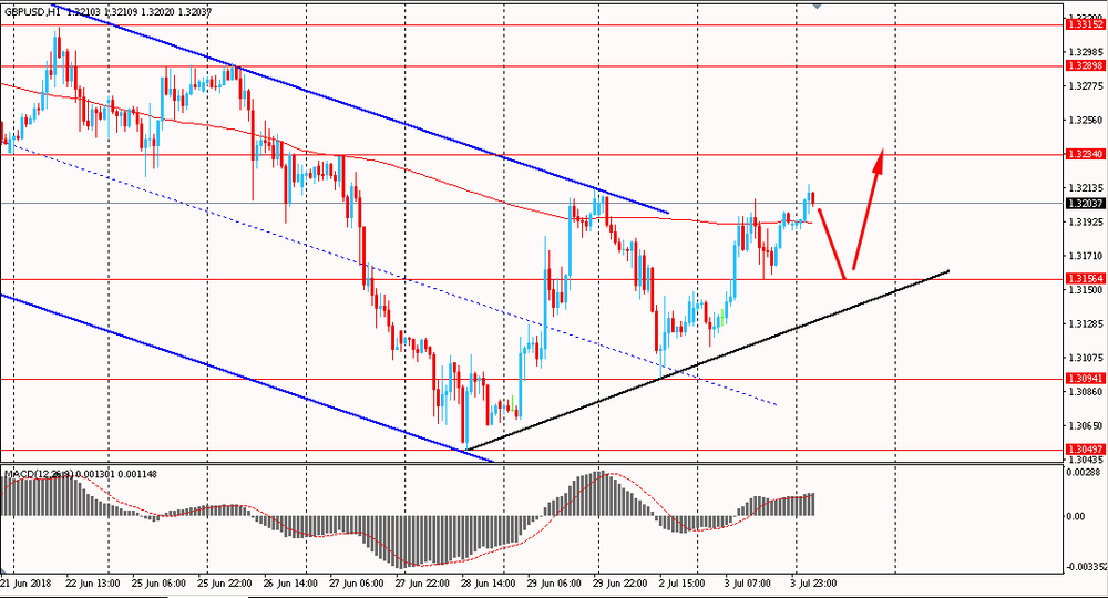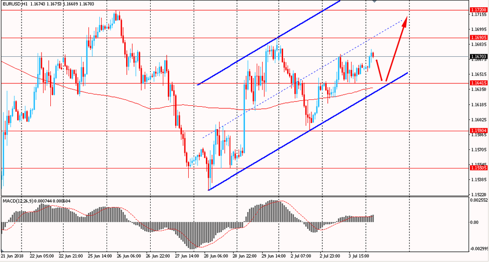 Пара EUR/USD сегодня утром выросла к $1.1675, продолжая вчерашний подъем. Во вторник пара, оттолкнувшись от линии поддержки канала, начала расти и закрыла день на положительной территории. Евро сумел вернуться в рамки общего восходящего канала от 28 июня. На данный момент пара снова закрепилась выше линии скользящей средней MA 200 H1. Скорее всего быки будут пытаться продолжить вчерашний подъем и закрепить свои позиции выше срединной линии канала.