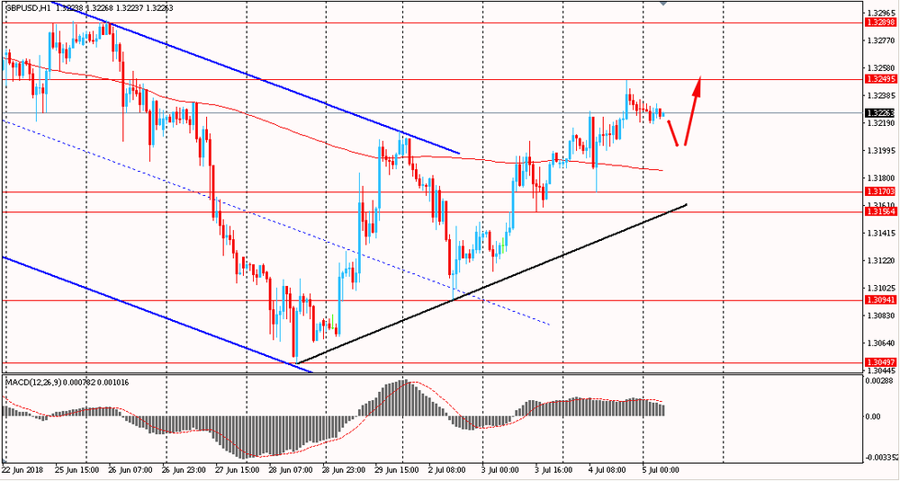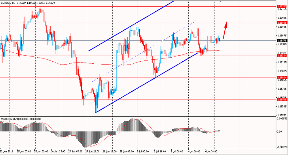 Пара EUR/USD сегодня утром торговалась в узком диапазоне $1.1655-65. В среду пара падала в первой половине дня, однако, оттолкнувшись от линии поддержки канала, немного восстановилась, и закрыла день около цены открытия. На данный момент евро все еще торгуется в рамки общего восходящего канала от 28 июня. Пара все еще торгуется выше линии скользящей средней MA 200 H1. Скорее всего быки будут пытаться продолжить общий подъем и закрепить свои позиции выше срединной линии канала.