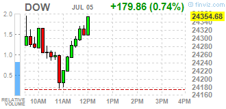 Большинство компонентов DOW в плюсе (25 из 30). Лидер роста - Intel Corporation (INTC, +2,45%). Аутсайдер - Cisco Systems, Inc. (CSCO, -0,88%).