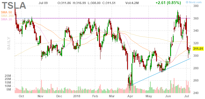 На текущий момент акции Tesla (TSLA) котируются по $311,51 (+0,85%)