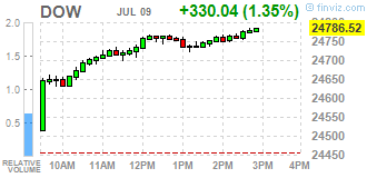 Большинство компонентов DOW в плюсе (26 из 30). Лидер роста - Caterpillar Inc. (CAT, +3,70%). Аутсайдер - The Procter & Gamble Company (PG, -1,71%).