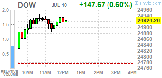 Большинство компонентов DOW в плюсе (27 из 30). Лидер роста - The Procter & Gamble Company (PG, +1,77%). Аутсайдер - Walgreens Boots Alliance, Inc. (WBA, -0,96%).