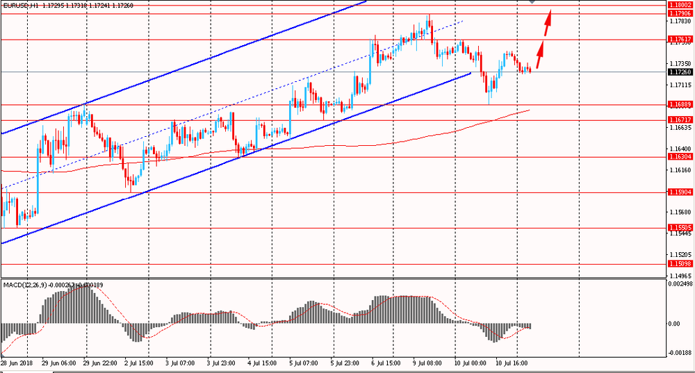 Пара EUR/USD сегодня утром торговалась в диапазоне $1.1725-35. Вчера пара в первой половине дня упала и пробила линию поддержки основного восходящего канала, однако, нашла поддержку около $1.1700 и восстановилась, закрыв день около цены открытия. На данный момент евро продолжает попытки закрепиться ниже канала. Однако, важно понимать, что единая валюта все еще находится выше линии скользящей средней MA 200 H1, а значит быки все еще удерживают превосходство.