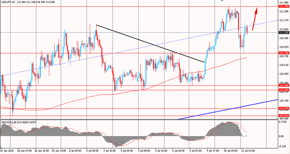 Сегодня утром пара USD/JPY выросла к Y111.10, восстанавливаясь со вчерашних минимумов. Во вторник пара, выросла в первой половине дня, однако встретила сопротивление на отметке Y111.35 и резко упала под окончание торгов. На данный момент пара снова торгуется около срединной линии глобального восходящего канала на 4-х часовом графике. USD/JPY все еще находится выше линии скользящей средней MA 200 H1, а значит, в целом, быки полностью удерживают превосходство и будут развивать успех в рамках глобального аптренда.