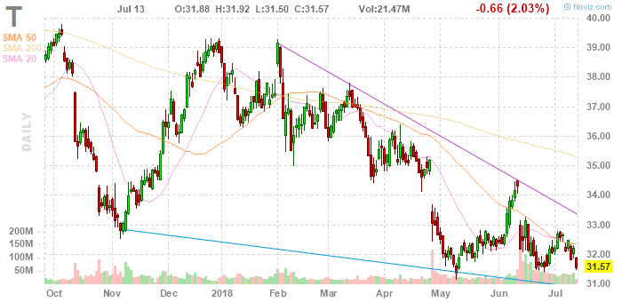 На текущий момент акции AT&T (T) котируются по $31,57 (-2,03%)
